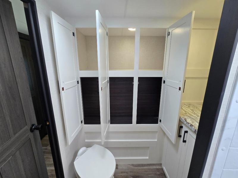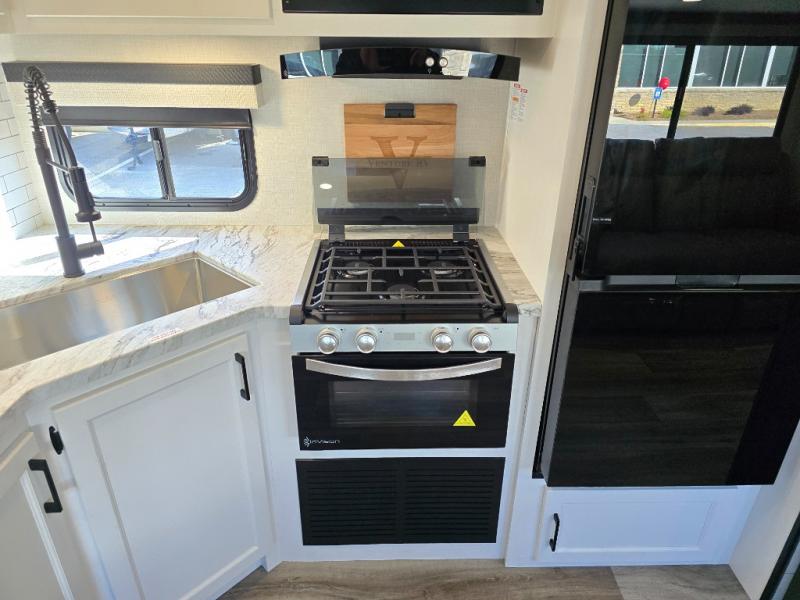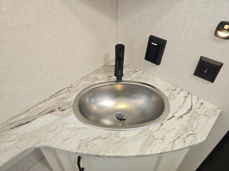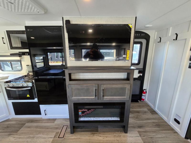 You're going to feel right at home in this Stratus single slide unit! There is not only a fully equipped kitchen with a three burner cooktop, but also an outside campfire café with a griddle, refrigerator, sink, and even an exterior 40" TV for your entertainment. As you enter the unit, you will notice to the right a walk-in pantry with coat hooks, and to the left is the full rear bathroom with a 30" x 36" shower, a three door linen closet, and a cabinet prepped to add an optional washer and dryer. If mother nature rains on your parade then relax inside on either the 70" sofa or the sit n' slide table dinette across from the entertainment center.