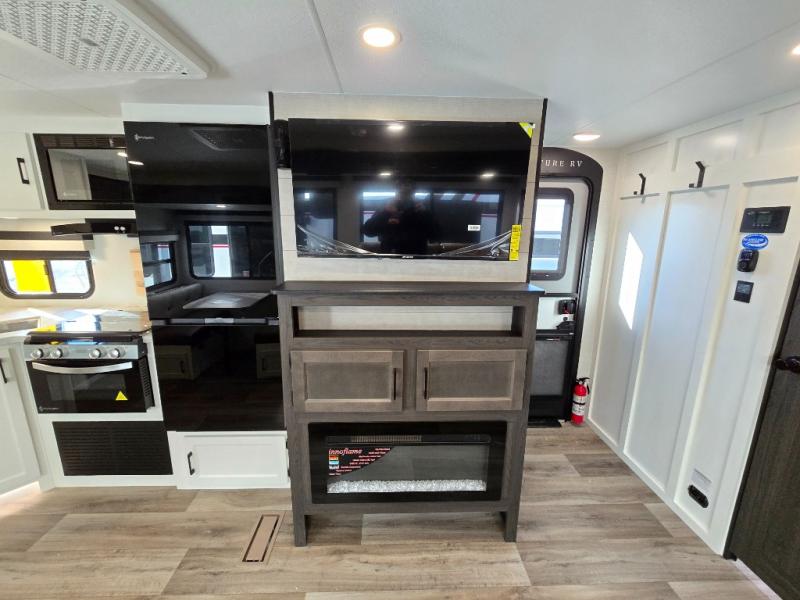 You're going to feel right at home in this Stratus single slide unit! There is not only a fully equipped kitchen with a three burner cooktop, but also an outside campfire café with a griddle, refrigerator, sink, and even an exterior 40" TV for your entertainment. As you enter the unit, you will notice to the right a walk-in pantry with coat hooks, and to the left is the full rear bathroom with a 30" x 36" shower, a three door linen closet, and a cabinet prepped to add an optional washer and dryer. If mother nature rains on your parade then relax inside on either the 70" sofa or the sit n' slide table dinette across from the entertainment center.
