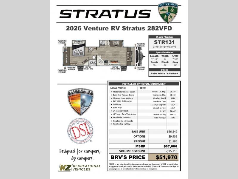 Venture RV Stratus Ultra-Lite 282VFD Highlights: