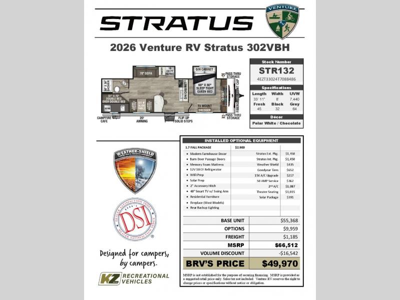 Venture RV Stratus SR302VBH Highlights: