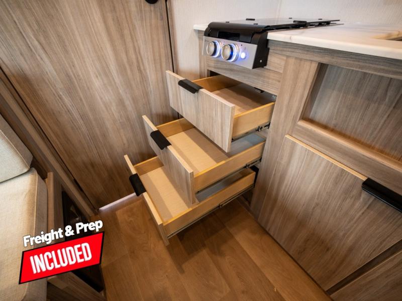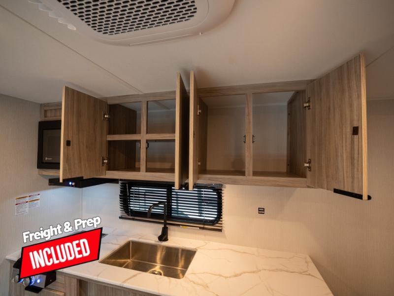 With any Winnebago Access travel trailer you will find thoughtful, clean, and contemporary designs filled with premium features that all have come to expect on any Winnebago towable. There are single and tandem axle models available, each with superior storage, durable construction, and spacious interiors. The functional galley kitchen will make time at the campground easier than ever, and the stylish roller shades will provide privacy and shade when you need it!
