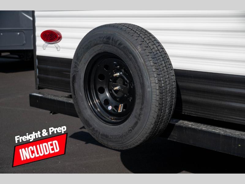 This travel trailer is designed to make camping more comfortable, affordable, and fun for the whole family! The front 60" x 80" queen bed offers a comfortable place to lay your head at night and a shirt closet to hang your clothes. There are a set of 48" x 68" bunk beds for others to sleep, and you can even transform the 38" x 68" booth dinette into extra sleeping space. The fully equipped kitchen has everything you need to prepare a delicious home cooked meal and a 12V refrigerator to store any leftovers. After a fun-filled day, head to the rear corner bathroom to freshen up in the 30" x 36" shower with 14" x 22" skylight to let in some natural lighting!