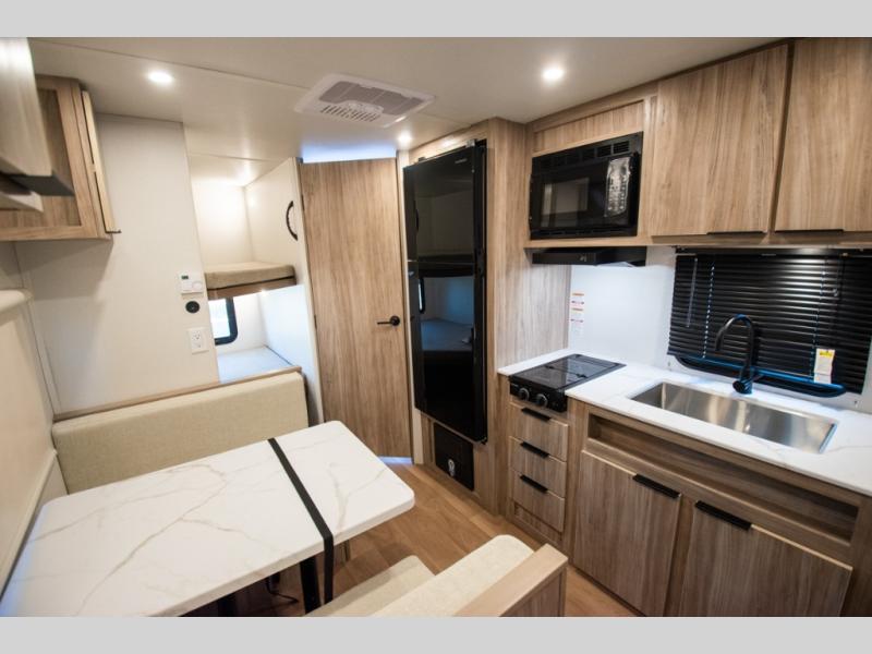 With any Winnebago Access travel trailer you will find thoughtful, clean, and contemporary designs filled with premium features that all have come to expect on any Winnebago towable. There are single and tandem axle models available, each with superior storage, durable construction, and spacious interiors. The functional galley kitchen will make time at the campground easier than ever, and the stylish roller shades will provide privacy and shade when you need it!