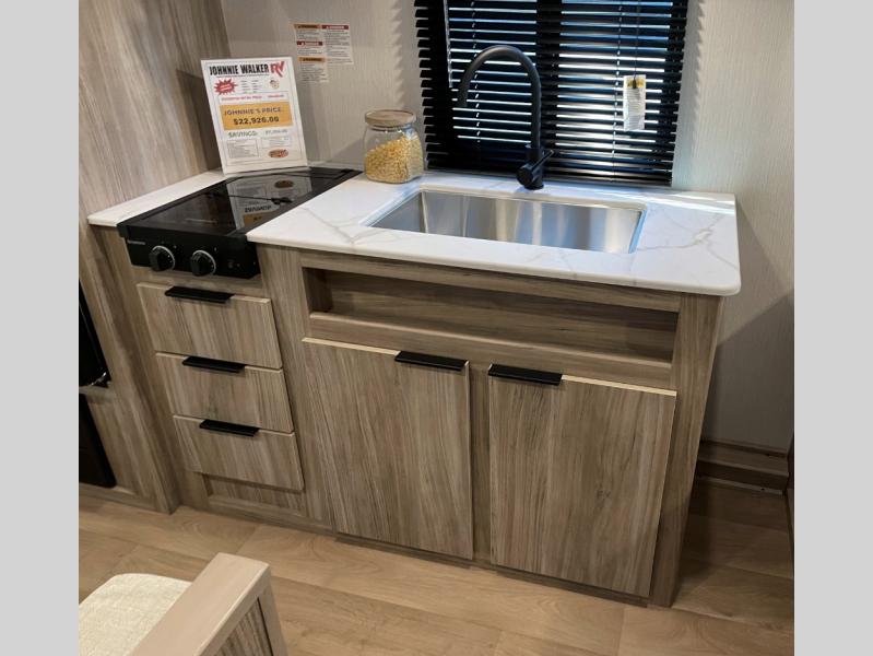 With any Winnebago Access travel trailer you will find thoughtful, clean, and contemporary designs filled with premium features that all have come to expect on any Winnebago towable. There are single and tandem axle models available, each with superior storage, durable construction, and spacious interiors. The functional galley kitchen will make time at the campground easier than ever, and the stylish roller shades will provide privacy and shade when you need it!