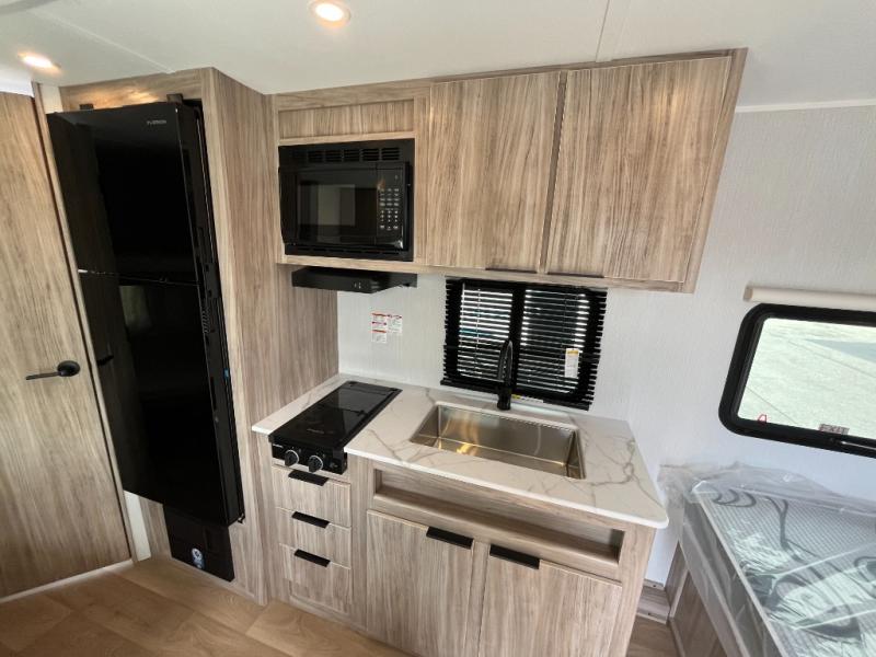 With any Winnebago Access travel trailer you will find thoughtful, clean, and contemporary designs filled with premium features that all have come to expect on any Winnebago towable. There are single and tandem axle models available, each with superior storage, durable construction, and spacious interiors. The functional galley kitchen will make time at the campground easier than ever, and the stylish roller shades will provide privacy and shade when you need it!