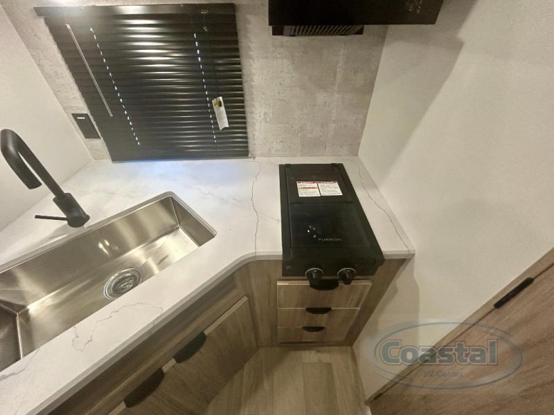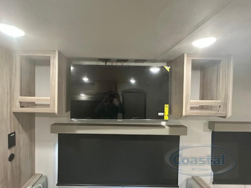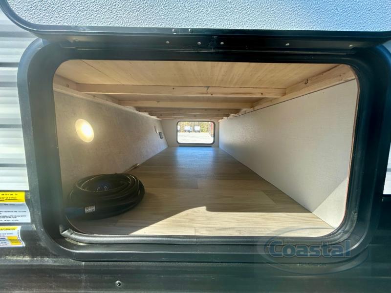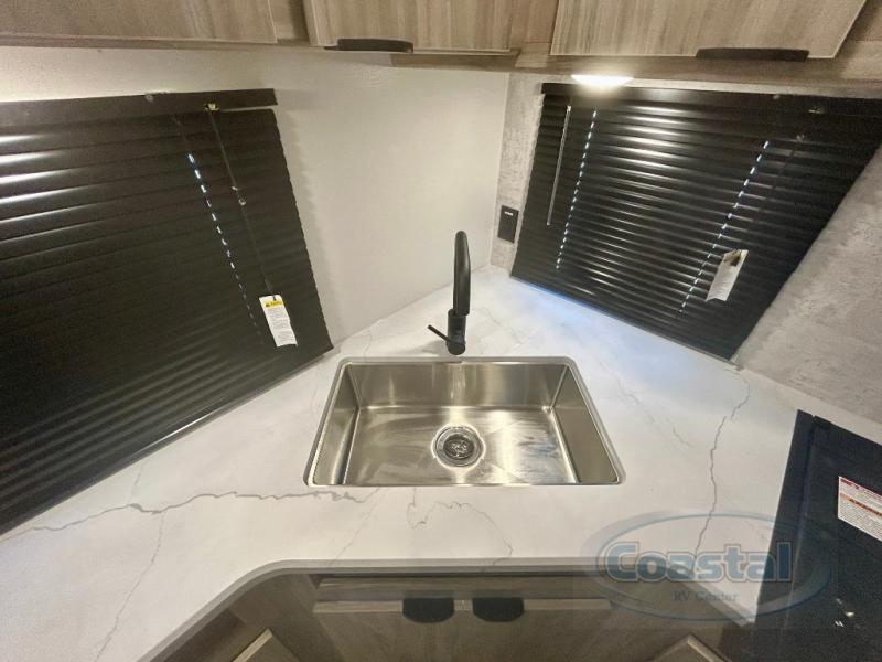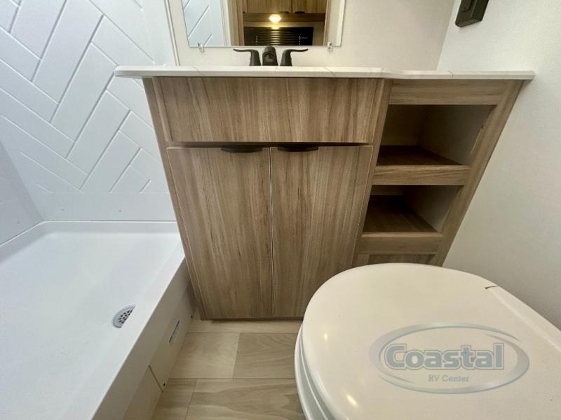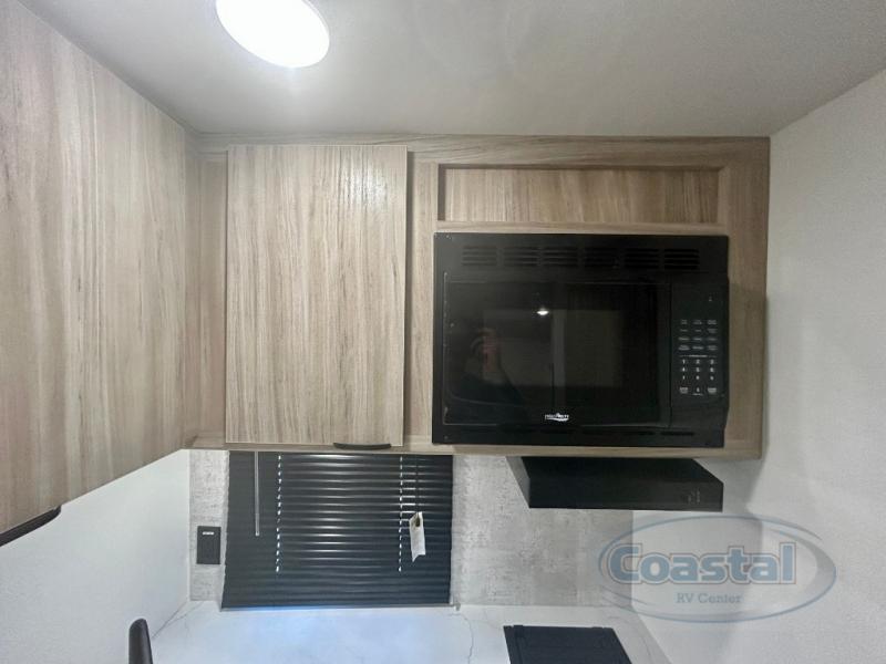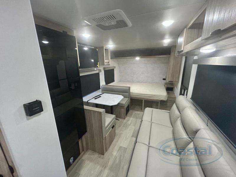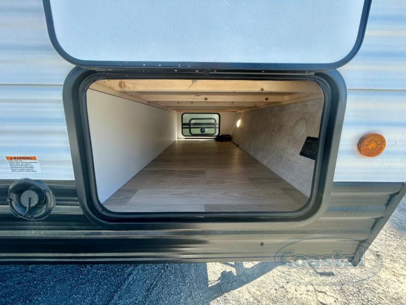Enjoy generations of fun in this travel trailer! The front 60" x 80" queen bed offers a comfortable place to lay your head at night and a shirt closet to hang your clothes. You can even transform the 64" flip-out sofa and 38" x 68" booth dinette into extra sleeping space. The rear corner kitchen has everything you need to prepare a delicious home cooked meal and a 12V refrigerator to store any leftovers. After a fun-filled day, head to the rear corner bathroom to freshen up in the 30" x 36" shower with 14" x 22" skylight to let in some natural lighting!