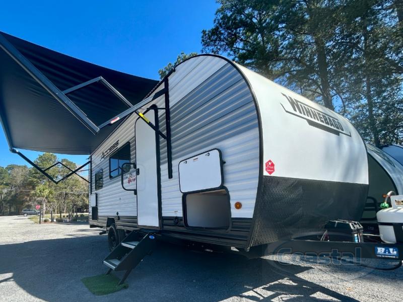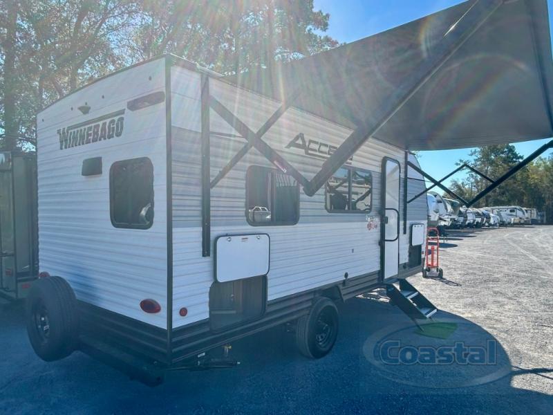With any Winnebago Access travel trailer you will find thoughtful, clean, and contemporary designs filled with premium features that all have come to expect on any Winnebago towable. You will appreciate the stylish exterior aerodynamic front profile and durable sidewall metal for greater aerodynamics plus strength and durability. With a fully enclosed underbelly that comes with radiant foil insulation, you can easily extend your camping season into the colder months without worrying about having frozen pipes. On the inside, a foot flush toilet, roller shades, abundant storage, and spacious living areas making every camping trip more enjoyable. Make your choice today and Access your next adventure!