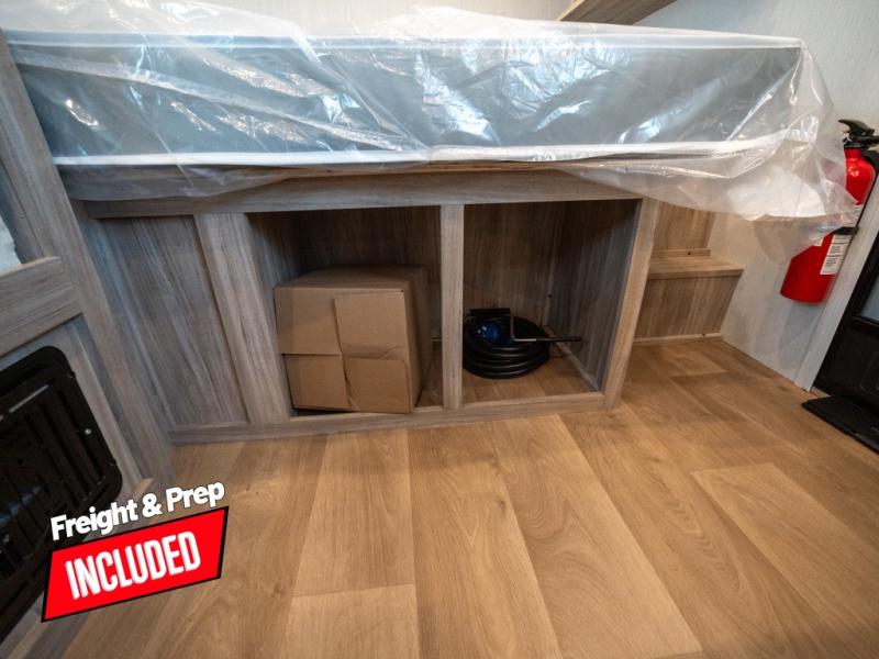 Enjoy generations of fun in this travel trailer! The front 60" x 80" queen bed offers a comfortable place to lay your head at night and a shirt closet to hang your clothes. You can even transform the 64" flip-out sofa and 38" x 68" booth dinette into extra sleeping space. The rear corner kitchen has everything you need to prepare a delicious home cooked meal and a 12V refrigerator to store any leftovers. After a fun-filled day, head to the rear corner bathroom to freshen up in the 30" x 36" shower with a skylight to let in some natural lighting!