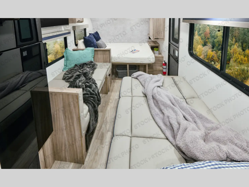 Enjoy generations of fun in this travel trailer! The front 60" x 80" queen bed offers a comfortable place to lay your head at night and a shirt closet to hang your clothes. You can even transform the 64" flip-out sofa and 38" x 68" booth dinette into extra sleeping space. The rear corner kitchen has everything you need to prepare a delicious home cooked meal and a 12V refrigerator to store any leftovers. After a fun-filled day, head to the rear corner bathroom to freshen up in the 30" x 36" shower with a skylight to let in some natural lighting!