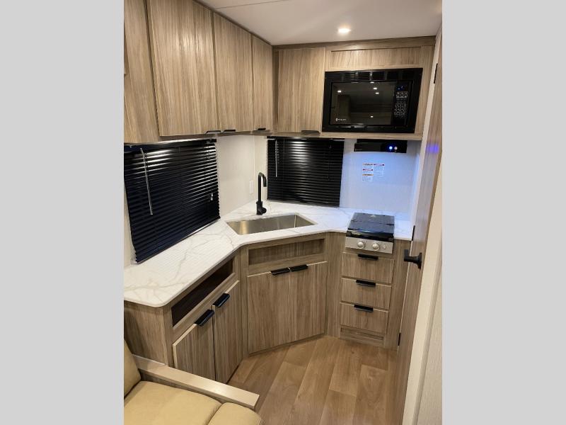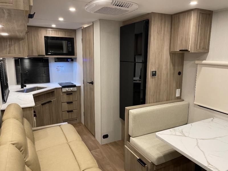 With any Winnebago Access travel trailer you will find thoughtful, clean, and contemporary designs filled with premium features that all have come to expect on any Winnebago towable. There are single and tandem axle models available, each with superior storage, durable construction, and spacious interiors. Each model features an NXG engineered frame, a one-piece TPO roof membrane, and durable sidewall metal, providing a long-lasting RV. The functional galley kitchen will make time at the campground easier than ever, and the stylish roller shades will provide privacy and shade when you need it!