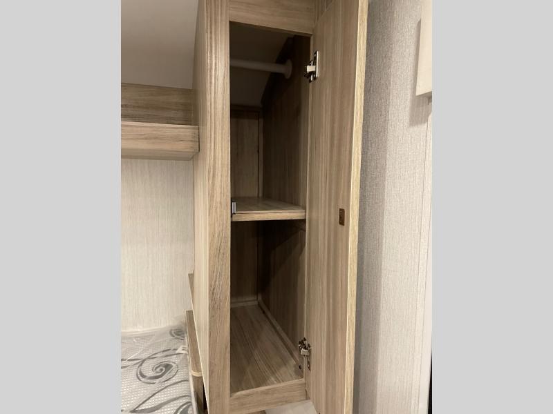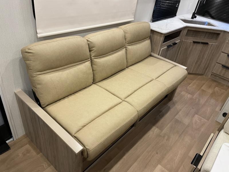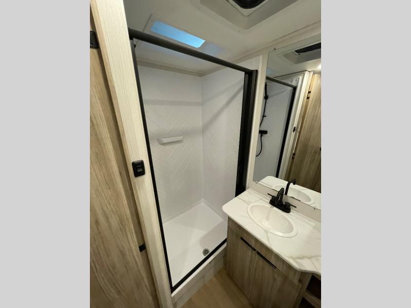 Enjoy generations of fun in this travel trailer! The front 60" x 80" queen bed offers a comfortable place to lay your head at night and a shirt closet to hang your clothes. You can even transform the 64" flip-out sofa and 38" x 68" booth dinette into extra sleeping space. The rear corner kitchen has everything you need to prepare a delicious home cooked meal and a 12V refrigerator to store any leftovers. After a fun-filled day, head to the rear corner bathroom to freshen up in the 30" x 36" shower with a skylight to let in some natural lighting!