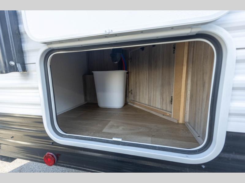 Enjoy generations of fun in this travel trailer! The front 60" x 80" queen bed offers a comfortable place to lay your head at night and a shirt closet to hang your clothes. You can even transform the 64" flip-out sofa and 38" x 68" booth dinette into extra sleeping space. The rear corner kitchen has everything you need to prepare a delicious home cooked meal and a 12V refrigerator to store any leftovers. After a fun-filled day, head to the rear corner bathroom to freshen up in the 30" x 36" shower with a skylight to let in some natural lighting!