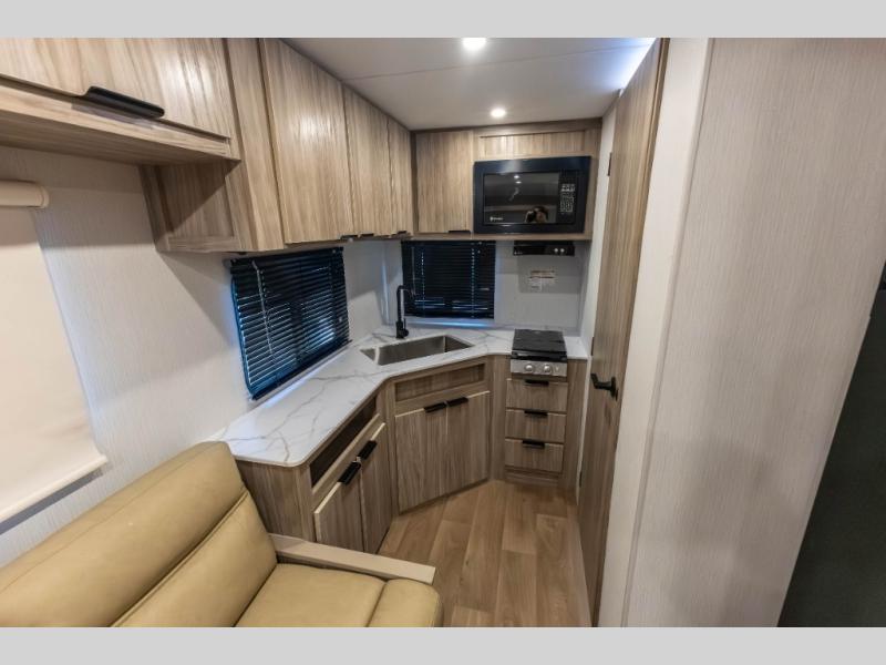 With any Winnebago Access travel trailer you will find thoughtful, clean, and contemporary designs filled with premium features that all have come to expect on any Winnebago towable. There are single and tandem axle models available, each with superior storage, durable construction, and spacious interiors. Each model features an NXG engineered frame, a one-piece TPO roof membrane, and durable sidewall metal, providing a long-lasting RV. The functional galley kitchen will make time at the campground easier than ever, and the stylish roller shades will provide privacy and shade when you need it!