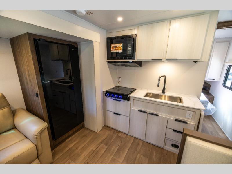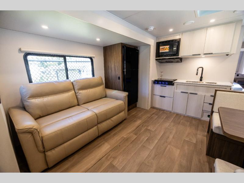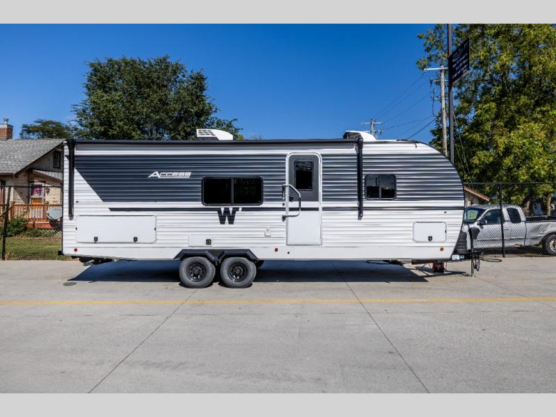 With any Winnebago Access travel trailer you will find thoughtful, clean, and contemporary designs filled with premium features that all have come to expect on any Winnebago towable. You will appreciate the stylish exterior aerodynamic front profile and durable sidewall metal for greater aerodynamics plus strength and durability. With a fully enclosed underbelly that comes with radiant foil insulation, you can easily extend your camping season into the colder months without worrying about having frozen pipes. On the inside, a foot flush toilet, roller shades, abundant storage, and spacious living areas making every camping trip more enjoyable. Make your choice today and Access your next adventure!