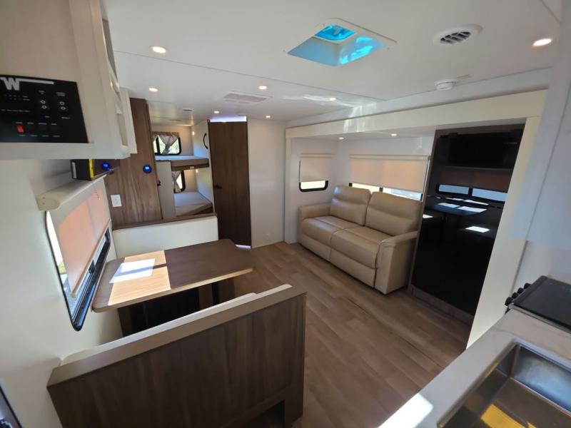 With any Winnebago Access travel trailer you will find thoughtful, clean, and contemporary designs filled with premium features that all have come to expect on any Winnebago towable. There are single and tandem axle models available, each with superior storage, durable construction, and spacious interiors. The functional galley kitchen will make time at the campground easier than ever, and the stylish roller shades will provide privacy and shade when you need it!