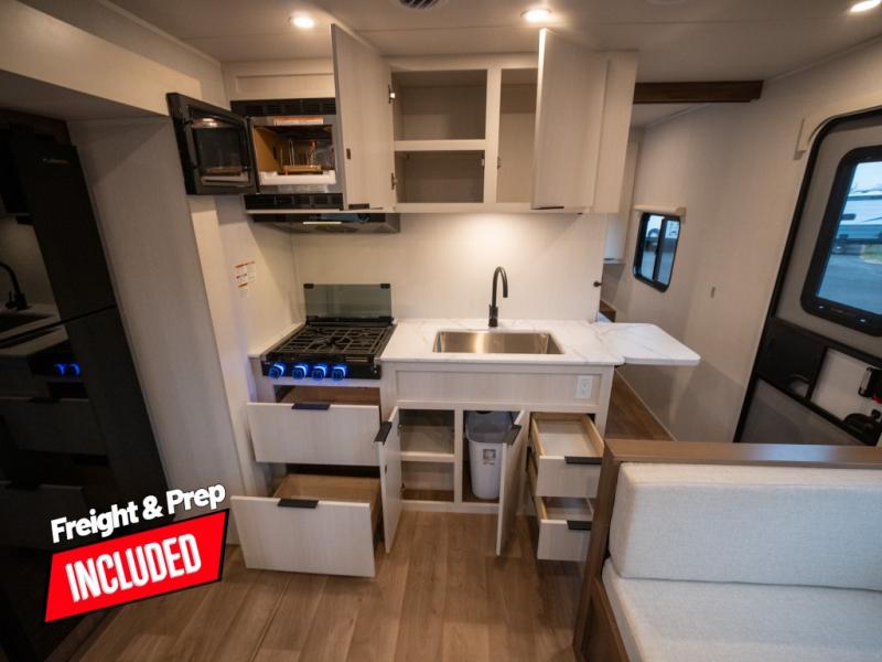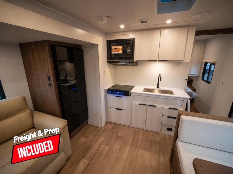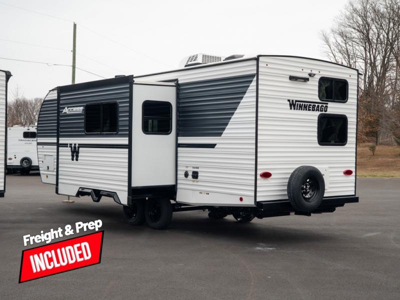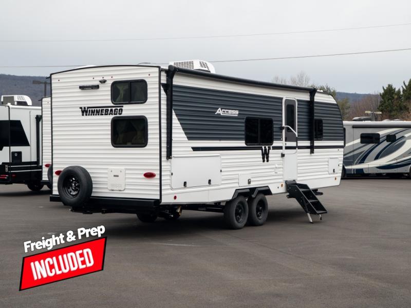 With any Winnebago Access travel trailer you will find thoughtful, clean, and contemporary designs filled with premium features that all have come to expect on any Winnebago towable. There are single and tandem axle models available, each with superior storage, durable construction, and spacious interiors. The functional galley kitchen will make time at the campground easier than ever, and the stylish roller shades will provide privacy and shade when you need it!