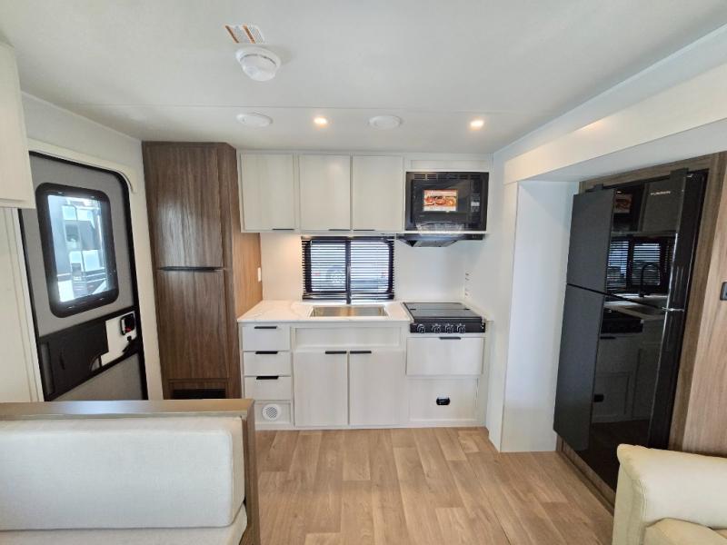 With any Winnebago Access travel trailer you will find thoughtful, clean, and contemporary designs filled with premium features that all have come to expect on any Winnebago towable. There are single and tandem axle models available, each with superior storage, durable construction, and spacious interiors. The functional galley kitchen will make time at the campground easier than ever, and the stylish roller shades will provide privacy and shade when you need it!