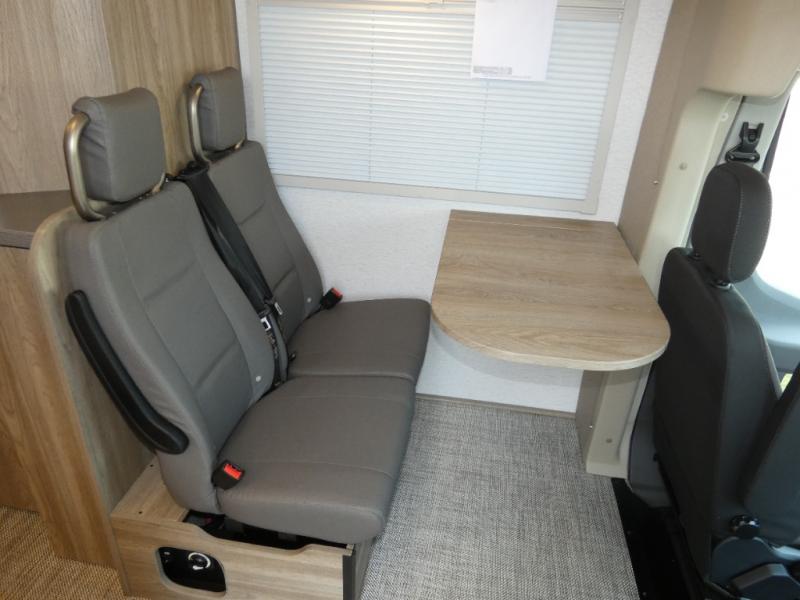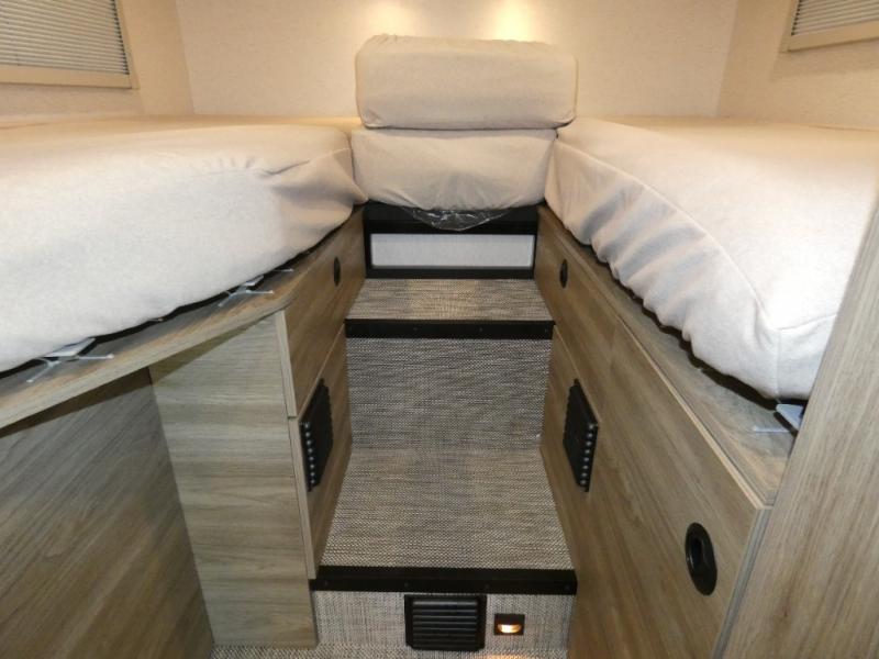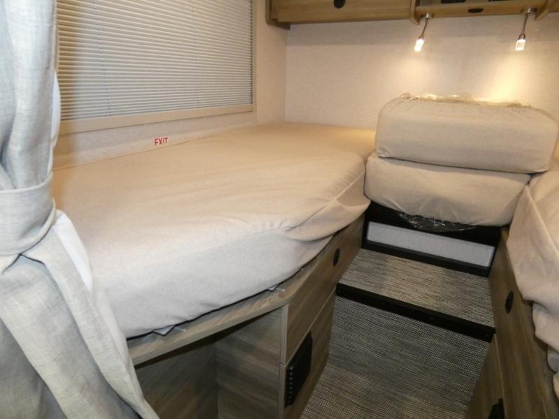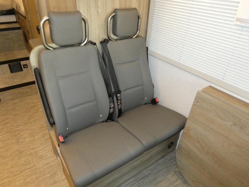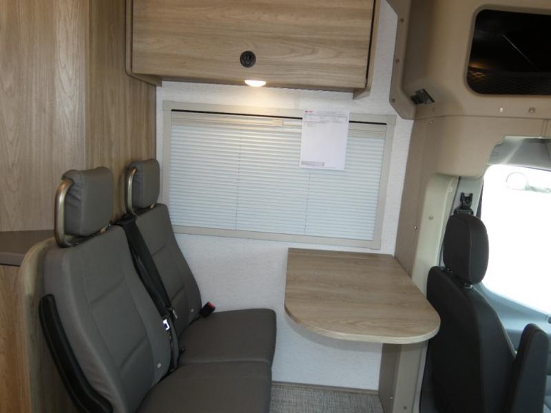 This EKKO all-wheel drive Class C gas motorhome is just unbelievably functional! Not only do you have plenty of storage space for all of your gear with the gear garage, under-bed storage, pantry, and 5.3-cubic foot refrigerator, but you also have a 24" x 30" wet bath with a pivoting lavatory wall so you can stay clean without having to stop at rest areas along the way. The cab area is excellently appointed with a radio/rearview monitor system, swivel/recline cab seats, and many driving safety features. Since the cab seats can swivel, you can use them as another place to sit down and eat at the fold-down table, and you can also use the swivel/adjustable work table for the passenger cab seat or as an extended countertop in the kitchen.