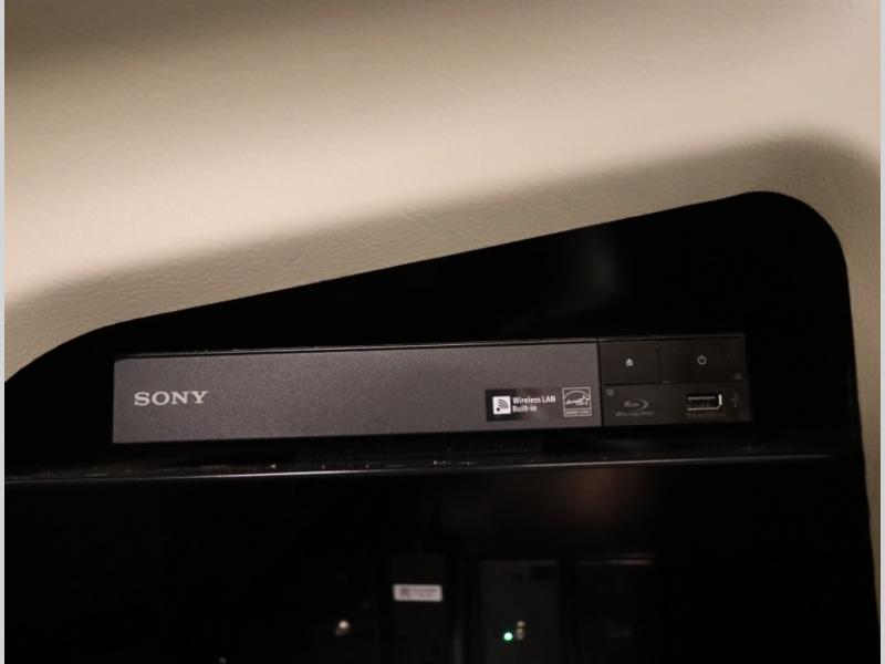 5. Front entertainment system with 24 in HDTV, Blu-Ray Streaming Media Player that includes Smart TV streaming, and Soundbar