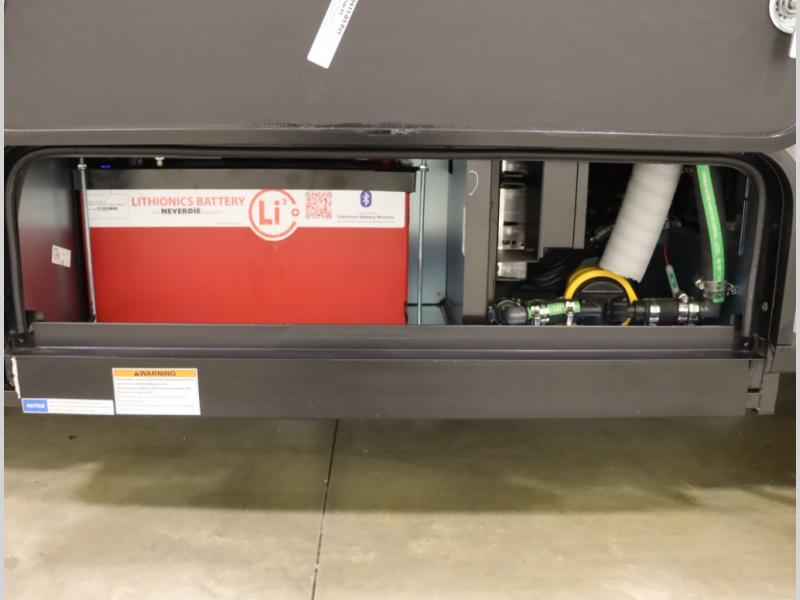 2. Lithionics lithium, UL 1973 certified for safety, 320 amp hour is standard, 4,096 watt hours, and an additional 320 ah battery install is available thru our Master RVTI trained technicians being a certified Lithionics factory installer, bringing 8,192 wh of available energy, while maintaining the generator