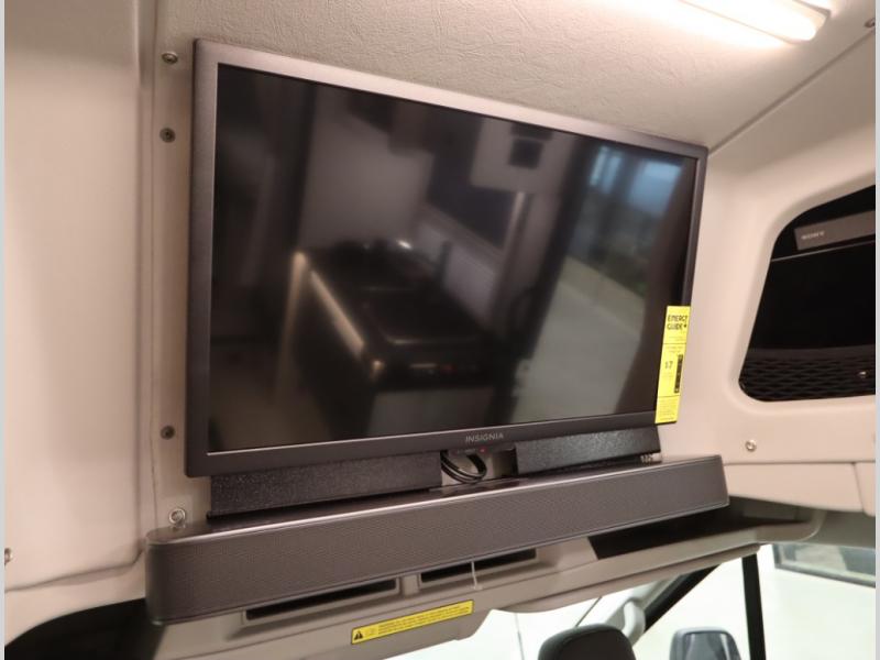 5. Front entertainment system with 24 in HDTV, Blu-Ray Streaming Media Player that includes Smart TV streaming, and Soundbar