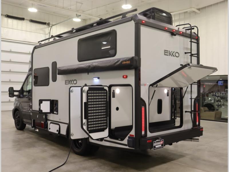 The all wheel drive, all season Winnebago EKKO combines the efficiency of a camper van, the added capacity of a Class C coach, and the enhanced capability of AWD to create not just a new model, but an entirely new type of RV. Blending the off road rugged nomadic nature of van life with the storage and livability of traditional touring class motor homes, the all new, all season Winnebago EKKO provides unmatched off grid and all season capabilities. Its standard all wheel drive capability goes where other motorhomes can't, yet with its van size, is easy to drive and easy to park.