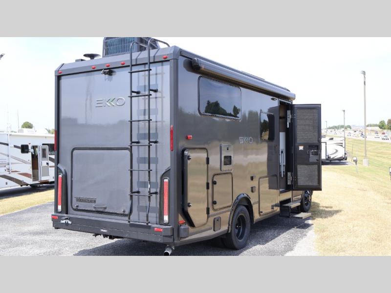 With the efficiency of a camper van, the capacity of a Class C coach, and the enhanced capability of AWD, the Winnebago EKKO Class C gas motorhome is ready to change the way you travel! You will be ready for all sorts of weather with the insulated water service center and heated holding tank compartment, and you will also be ready to camp just about anywhere with the three solar panels and a 2,800-watt gas generator. The heated gear garage has an L-track cargo tie-down system, and the RAM Tough-Track mount is an innovative way to mount a variety of different devices. The EKKO also has some very accommodating features that are included in its list of options, like the optional batwing awning, pop-top sleeping area with FROLI sleep system, luggage rack, and exterior kitchen.