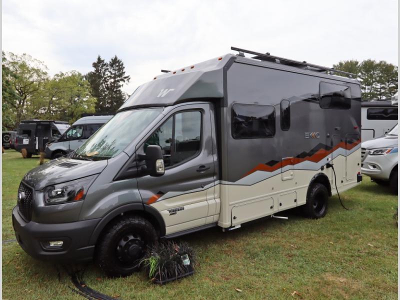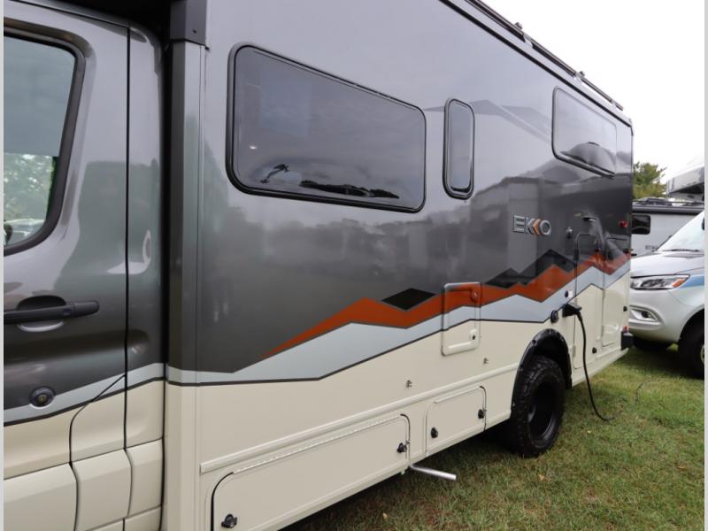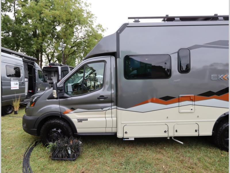 Now in a stunning Desert Mountain premium full body automotive paint, the all wheel drive, all season Winnebago EKKO combines the efficiency of a camper van, the added capacity of a Class C coach, and the enhanced capability of AWD to create not just a new model, but an entirely new type of RV. Blending the off road rugged nomadic nature of van life with the storage and livability of traditional touring class motor homes, the all new, all season Winnebago EKKO provides unmatched off grid and all season capabilities. Its standard all wheel drive capability goes where other motorhomes can't, yet with its van size, is easy to drive and easy to park.