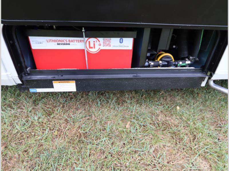 2. Lithionics lithium, UL 1973 certified for safety, 320 amp hour is standard, 4,096 watt hours, and an additional 320 ah battery install is available thru our Master RVTI trained technicians being a certified Lithionics factory installer, bringing 8,192 wh of available energy, while maintaining the generator
