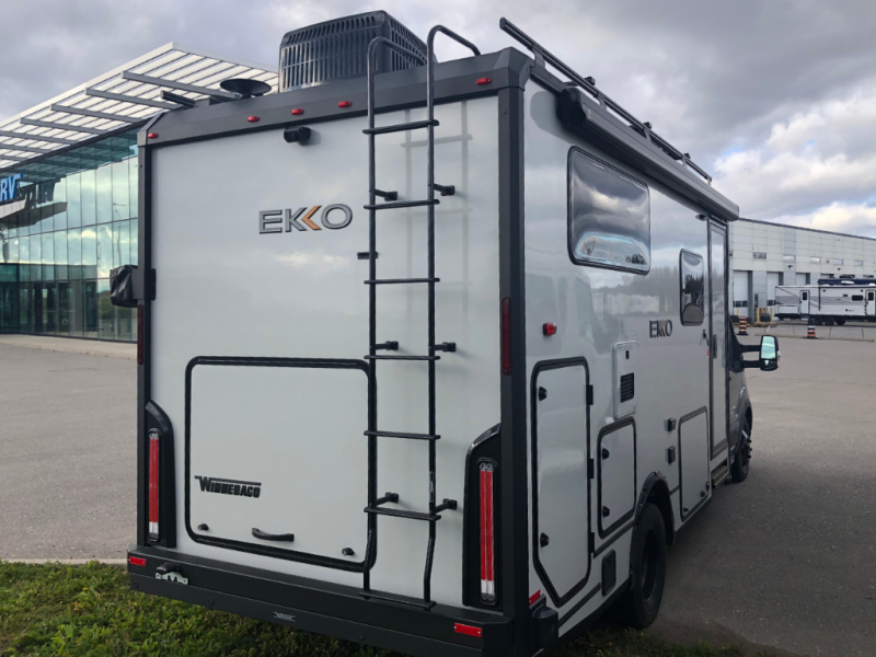 With the efficiency of a camper van, the capacity of a Class C coach, and the enhanced capability of AWD, the Winnebago EKKO Class C gas motorhome is ready to change the way you travel! You will be ready for all sorts of weather with the insulated water service center and heated holding tank compartment, and you will also be ready to camp just about anywhere with the three solar panels and a 2,800-watt gas generator. The heated gear garage has an L-track cargo tie-down system, and the RAM Tough-Track mount is an innovative way to mount a variety of different devices. The EKKO also has some very accommodating features that are included in its list of options, like the optional batwing awning, pop-top sleeping area with FROLI sleep system, luggage rack, and exterior kitchen.