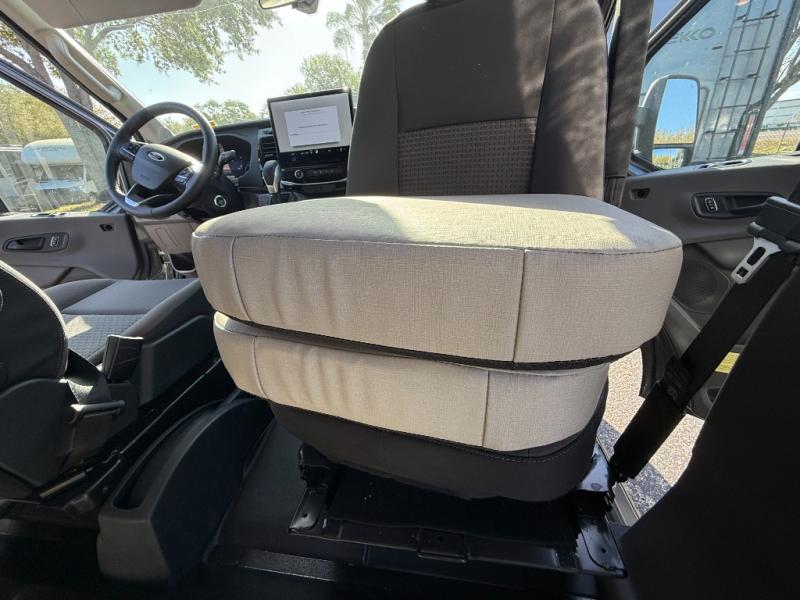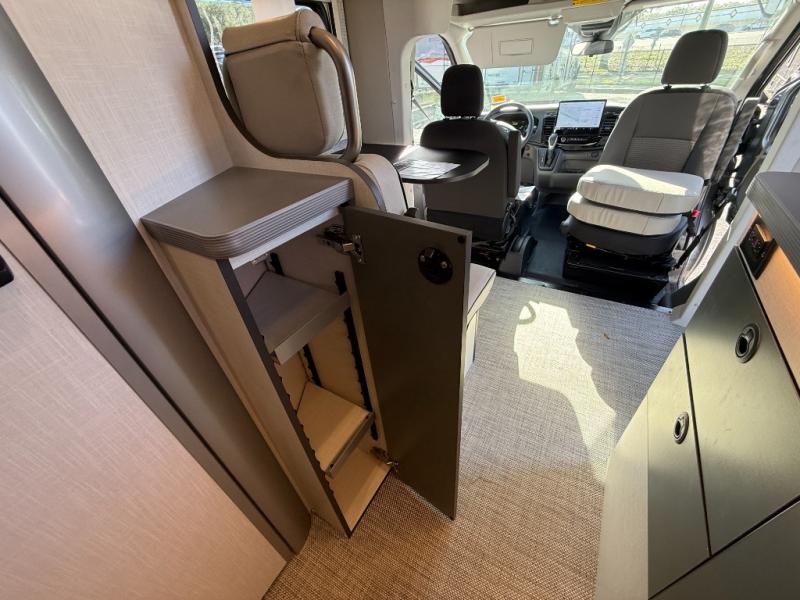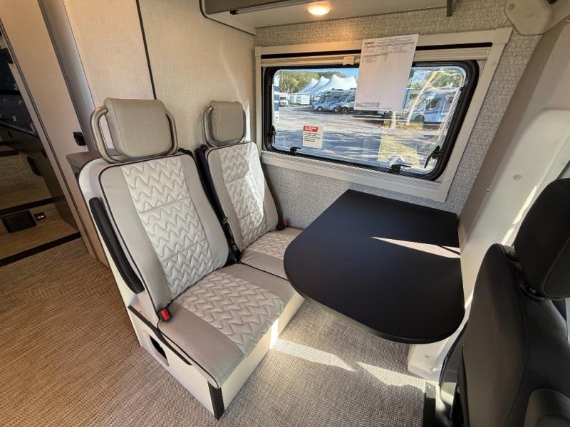 Swivel cab seats and a flexible dining area create a comfortable lounge space for relaxing, working remotely, or planning your next adventure.
