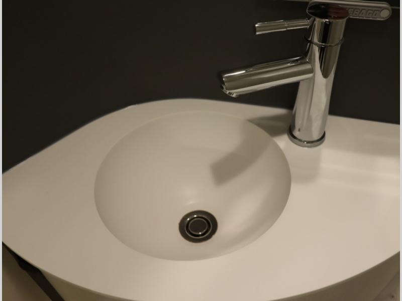 7. Pivoting bath wall for an oversized shower or spacious lavatory and cassette toilet