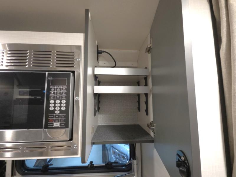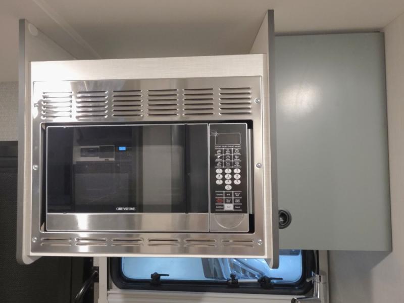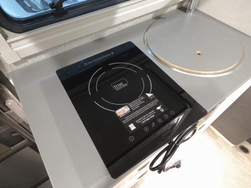 Fully Equipped Galley: Prepare meals with a portable single-burner induction range top, convection microwave oven, and a 5.3 cu. ft. single-door 12V refrigerator.