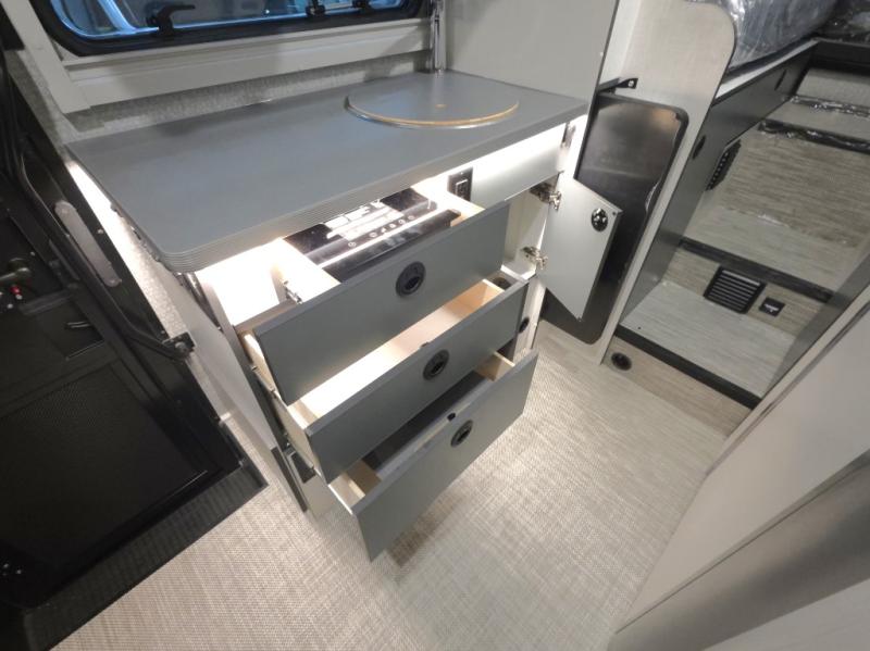Countertop Extension: Maximize prep space in the galley with a handy drawer and counter extension for easy meal creation on the road.