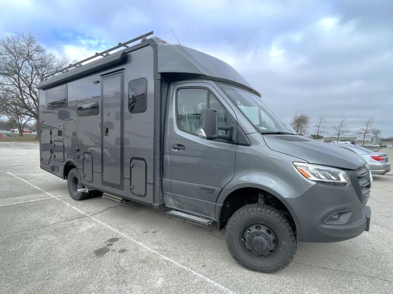 The Winnebago EKKO 23B is powered by the Mercedes-Benz AWD Sprinter chassis, offering elevated ground clearance, all-terrain tires, and advanced off-road capabilities for low-traction environments. Inside, you’ll find a versatile base camp with belted seating for four, sleeping for three or more with the optional pop-top, and a flexible living space that adapts to your needs.