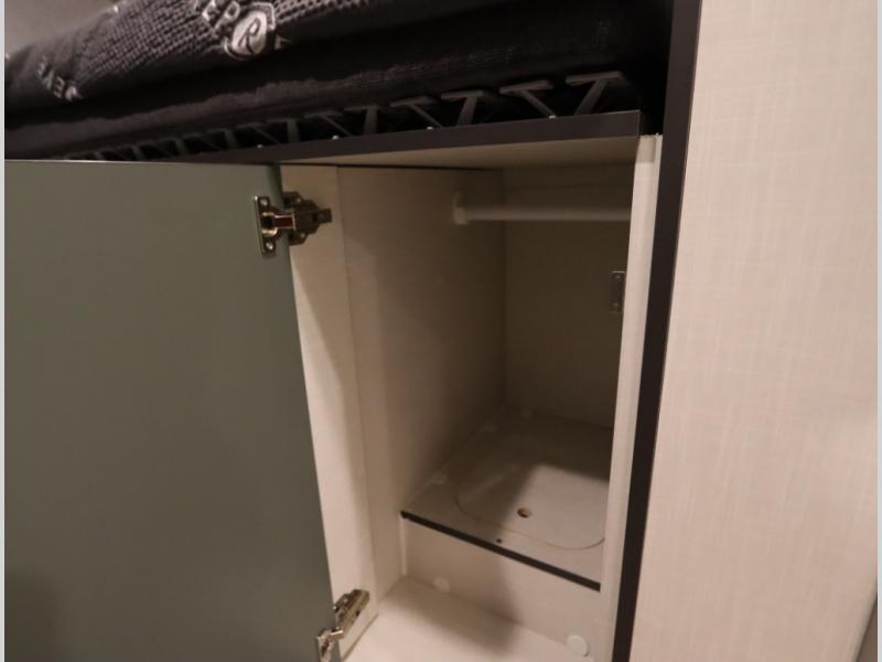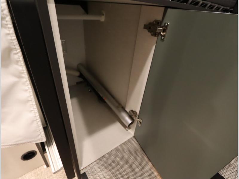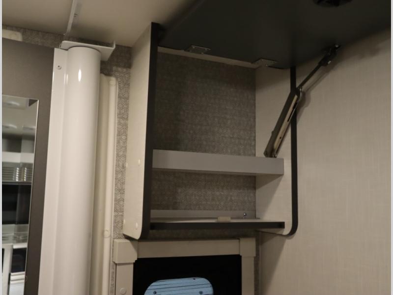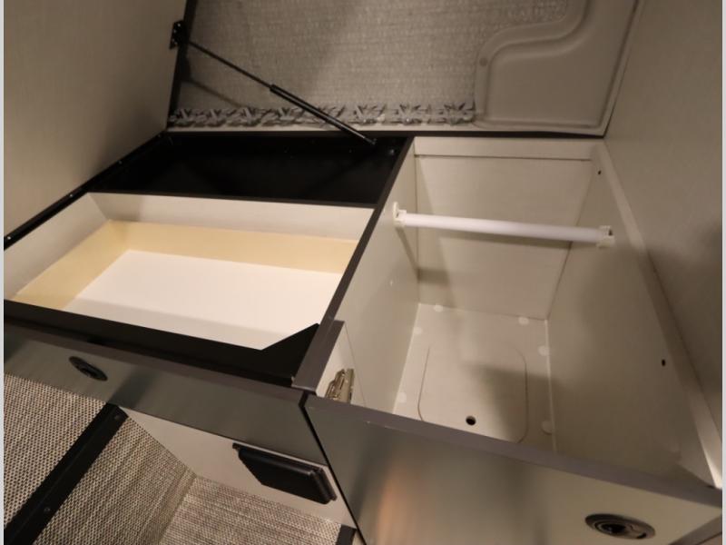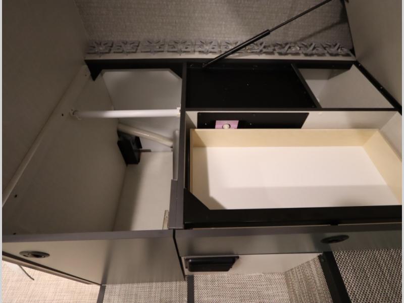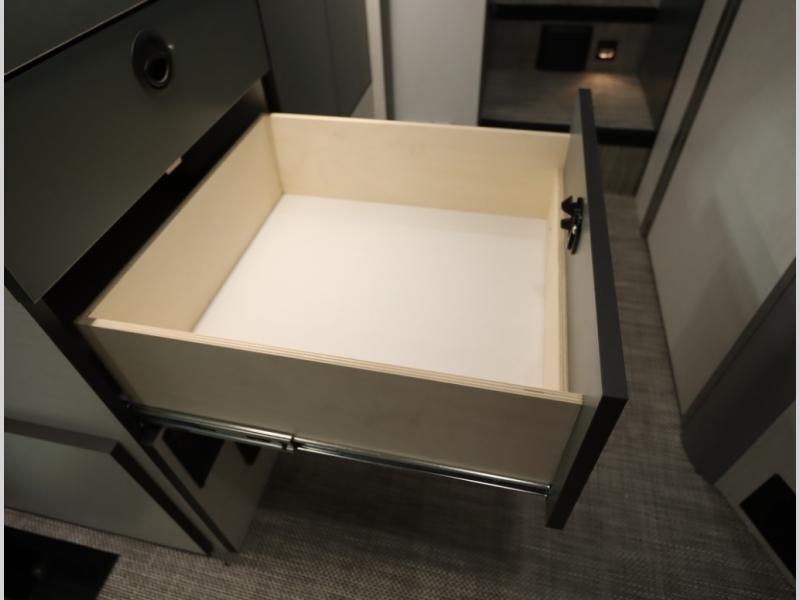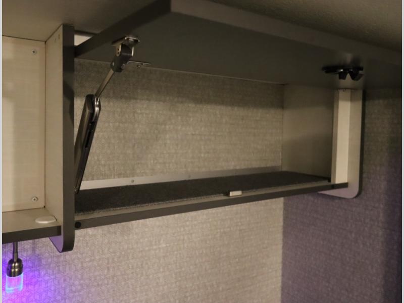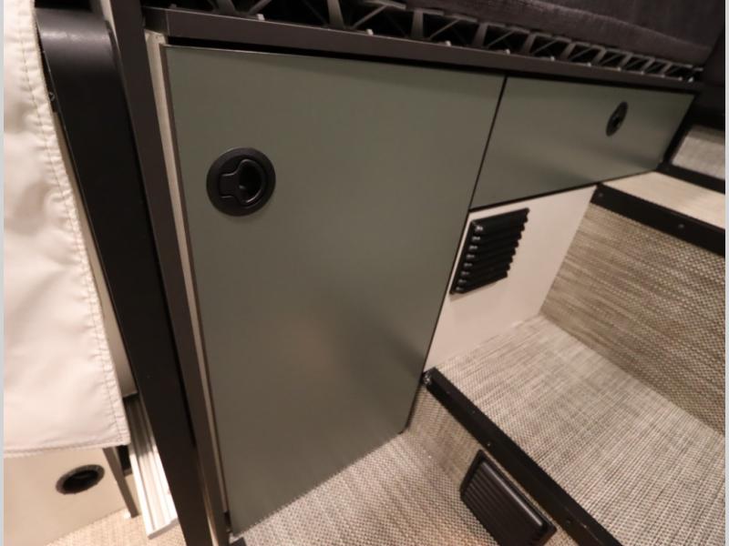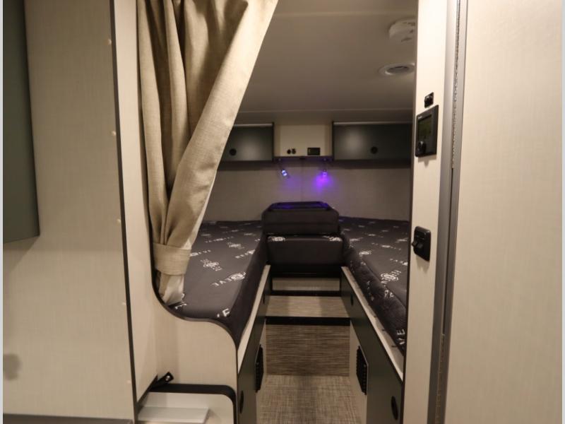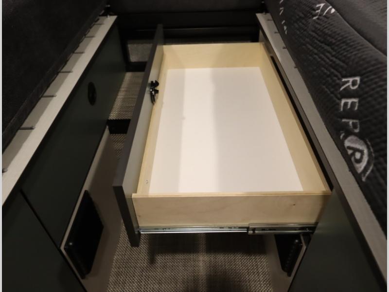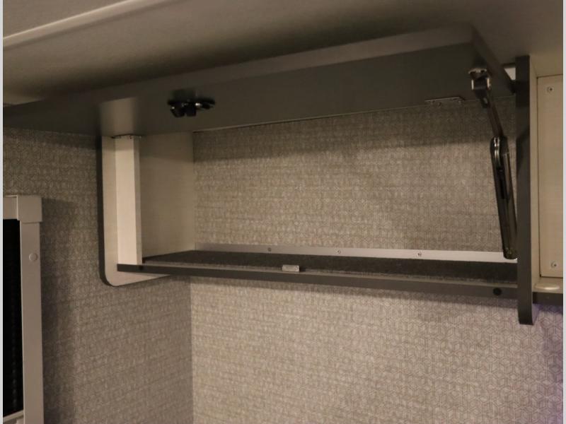 The EKKO 23B features a new modular front living area with dual seat belt locations, 4 total, that can be configured as a large forward facing dinette, cross coach dinette, dual sofas, or a 30x78 inch sleeping surface. Add the Luno Life cab bed, the EKKO 23B has sleeping for 4. A pop top addition can sleep an additional 2 for a total of 6!