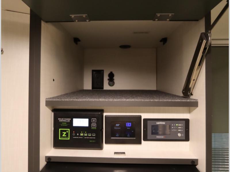 1. Lithionics lithium, UL 1973 certified for safety, 320 amp hour is standard, 4,096 watt hours, and an additional 320 ah battery install is available thru our Master RVTI trained technicians being a certified Lithionics factory installer, bringing 8,192 wh of available energy, while maintaining the generator