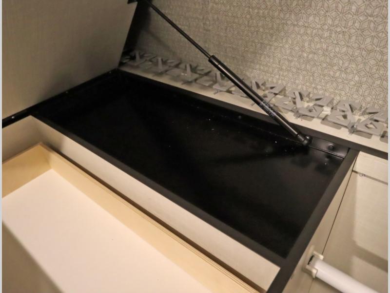 7. Pivoting bath wall for an oversized shower or spacious lavatory and cassette toilet