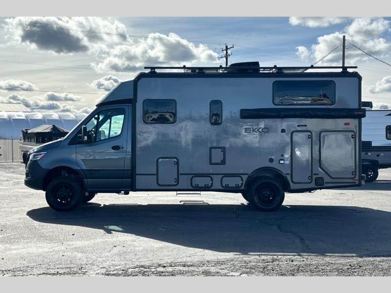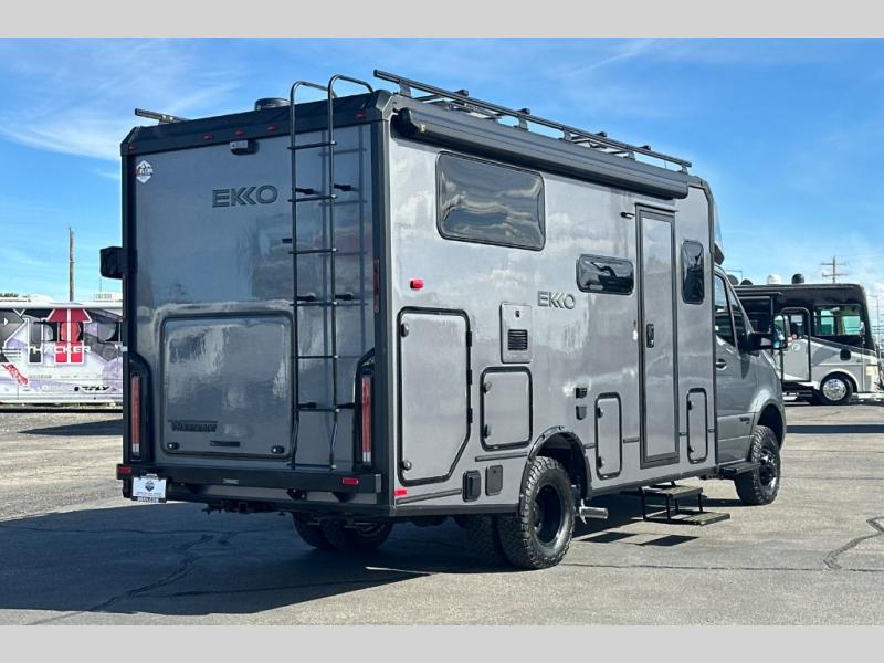 With the efficiency of a camper van, the capacity of a Class C coach, and the enhanced capability of AWD, the Winnebago EKKO Class C gas motorhome is ready to change the way you travel! You will be ready for all sorts of weather with the insulated water service center and heated holding tank compartment, and you will also be ready to camp just about anywhere with the three solar panels and a 2,800-watt gas generator. The heated gear garage has an L-track cargo tie-down system, and the RAM Tough-Track mount is an innovative way to mount a variety of different devices. The EKKO also has some very accommodating features that are included in its list of options, like the optional batwing awning, pop-top sleeping area with FROLI sleep system, luggage rack, and exterior kitchen.