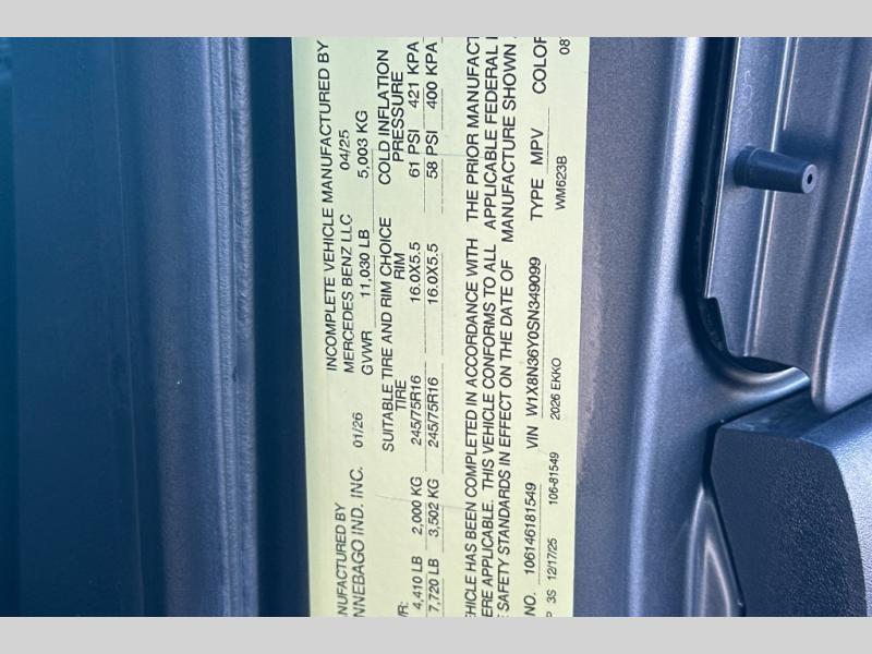 New 2026 Winnebago EKKO 23B Motor Home Class B+