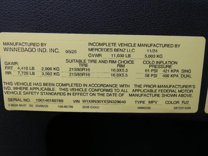New 2026 Winnebago EKKO Sprinter 23B Motor Home Class C - Diesel