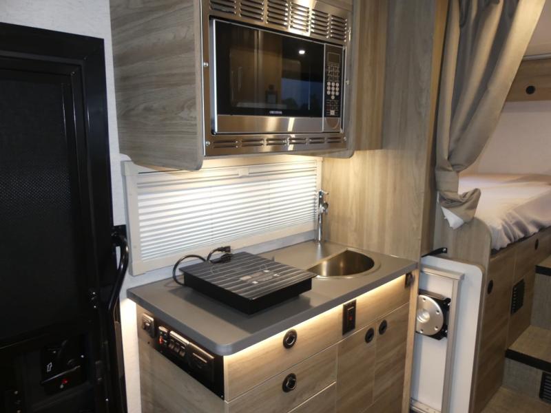 You will love the versatility found throughout this motorhome! Starting with the multifunctional lounge that can convert into four different modes. The flexible wet-dry bath has a pivoting lavatory wall, a 24" x 30" shower, an Oxygenics shower head to wash up, and even robe hooks to hang your towel afterwards. Keep your bellies full with delicious home cooked meals prepared in the versatile galley with the portable single burner induction range top, convection microwave oven, and 5.3 cu. ft. single door 12V refrigerator, plus a galley drawer/counter extension base. The heated gear garage has a L-track cargo tie down system with removable floor liner, 110V/12V charging ports and LED lighting to see clearly day or night!