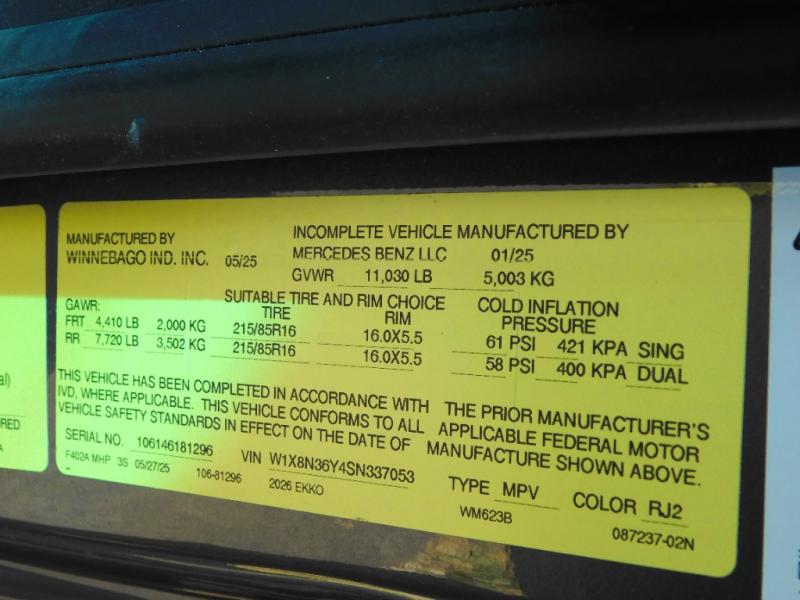 New 2026 Winnebago EKKO Sprinter 23B Motor Home Class C - Diesel
