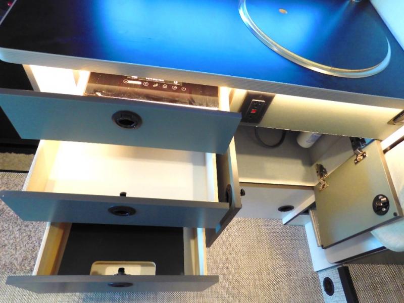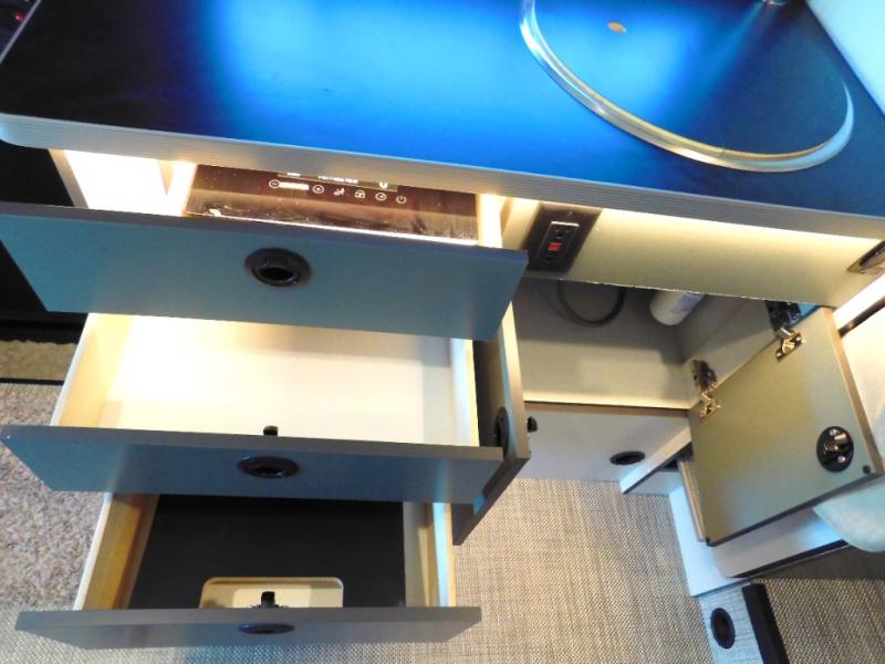 You will love the versatility found throughout this motorhome! Starting with the multifunctional lounge that can convert into four different modes. The flexible wet-dry bath has a pivoting lavatory wall, a 24" x 30" shower, an Oxygenics shower head to wash up, and even robe hooks to hang your towel afterwards. Keep your bellies full with delicious home cooked meals prepared in the versatile galley with the portable single burner induction range top, convection microwave oven, and 5.3 cu. ft. single door 12V refrigerator, plus a galley drawer/counter extension base. The heated gear garage has a L-track cargo tie down system with removable floor liner, 110V/12V charging ports and LED lighting to see clearly day or night!