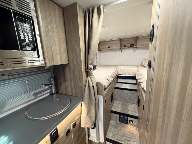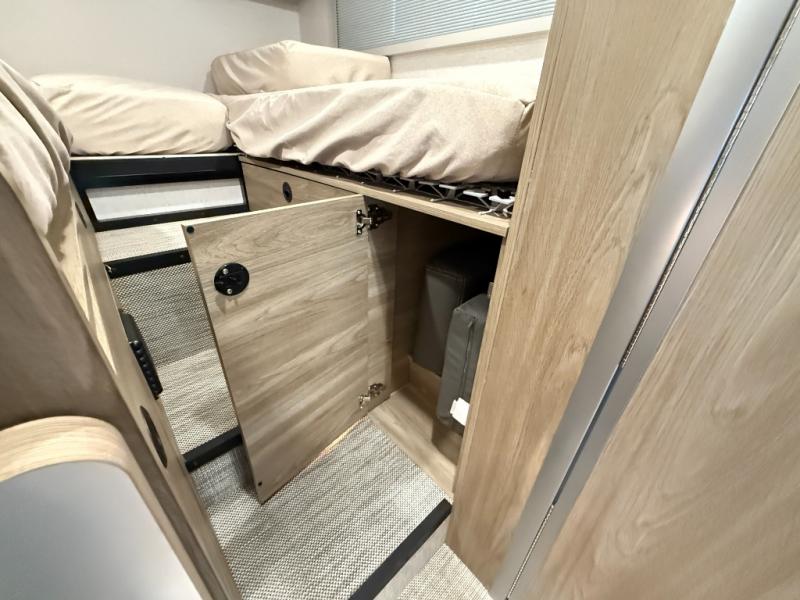 You will love the versatility found throughout this motorhome! Starting with the multifunctional lounge that can convert into four different modes. The flexible wet-dry bath has a pivoting lavatory wall, a 24" x 30" shower, an Oxygenics shower head to wash up, and even robe hooks to hang your towel afterwards. Keep your bellies full with delicious home cooked meals prepared in the versatile galley with the portable single burner induction range top, convection microwave oven, and 5.3 cu. ft. single door 12V refrigerator, plus a galley drawer/counter extension base. The heated gear garage has a L-track cargo tie down system with removable floor liner, 110V/12V charging ports and LED lighting to see clearly day or night!