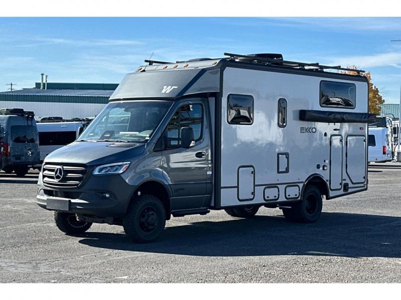 If you're ready to start your RV adventure then you need to check out this Winnebago EKKO Sprinter Class C diesel motorhome! Experience a versatile base camp with belted seating for four, sleeping for three or more with the added optional pop-top, deep gear garage, and flexible living space. It has enhanced off-road capabilities by being built on the Mercedes-Benz AWD Sprinter chassis that has elevated ground clearance and all-terrain tires for low-traction environments. Your driving comfort and safety are also enhanced with a MBUX multimedia system with navigation, Apple CarPlay and Android Auto, a digital rearview mirror, active lane keeping assist, DISTRONIC PLUS adaptive cruise control, attention assist, and much more. Come see what else it has to offer!