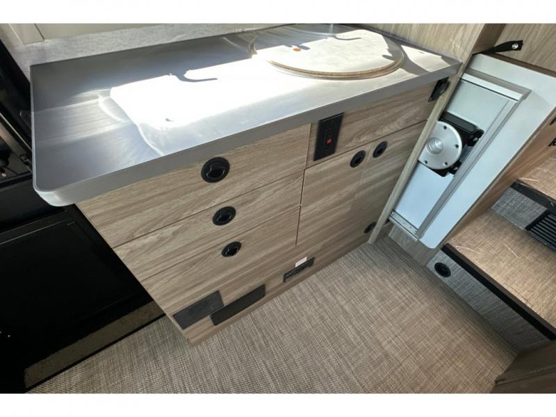 You will love the versatility found throughout this motorhome! Starting with the multifunctional lounge that can convert into four different modes. The flexible wet-dry bath has a pivoting lavatory wall, a 24" x 30" shower, an Oxygenics shower head to wash up, and even robe hooks to hang your towel afterwards. Keep your bellies full with delicious home cooked meals prepared in the versatile galley with the portable single burner induction range top, convection microwave oven, and 5.3 cu. ft. single door 12V refrigerator, plus a galley drawer/counter extension base. The heated gear garage has a L-track cargo tie down system with removable floor liner, 110V/12V charging ports and LED lighting to see clearly day or night!