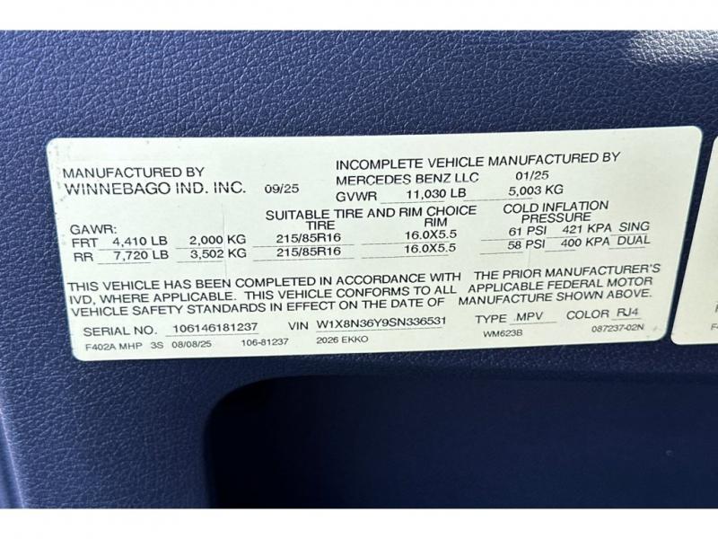 New 2026 Winnebago EKKO Sprinter 23B Motor Home Class B+