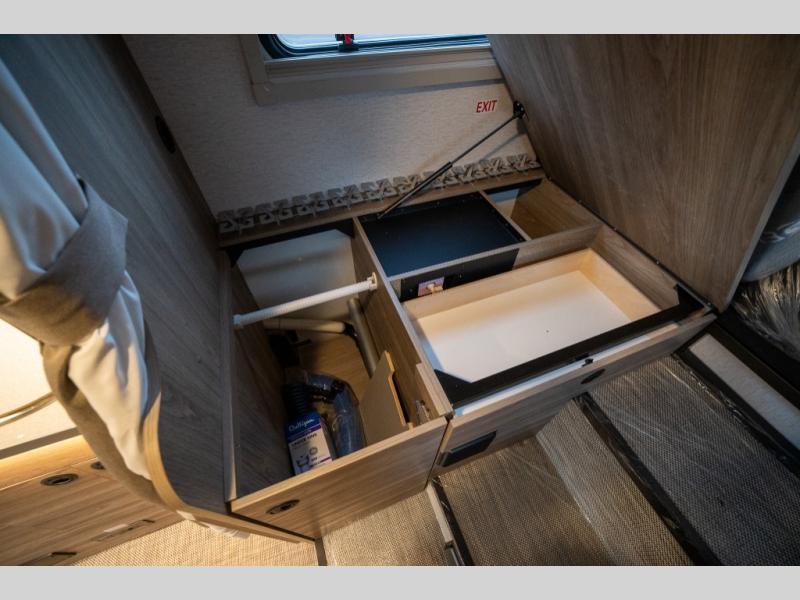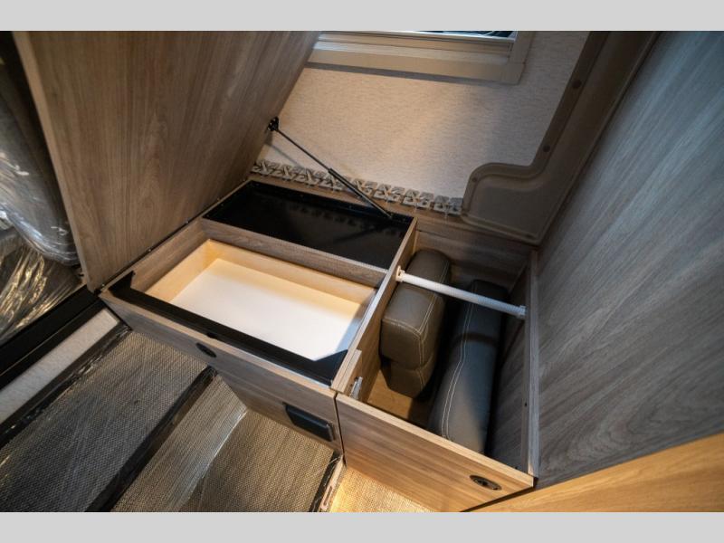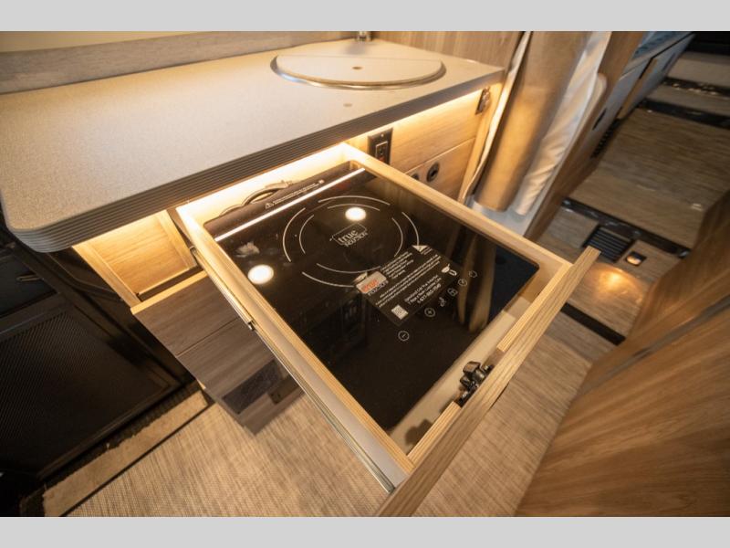 You will love the versatility found throughout this motorhome! Starting with the multifunctional lounge that can convert into four different modes. The flexible wet-dry bath has a pivoting lavatory wall, a 24" x 30" shower, an Oxygenics shower head to wash up, and even robe hooks to hang your towel afterwards. Keep your bellies full with delicious home cooked meals prepared in the versatile galley with the portable single burner induction range top, convection microwave oven, and 5.3 cu. ft. single door 12V refrigerator, plus a galley drawer/counter extension base. The heated gear garage has a L-track cargo tie down system with removable floor liner, 110V/12V charging ports and LED lighting to see clearly day or night!