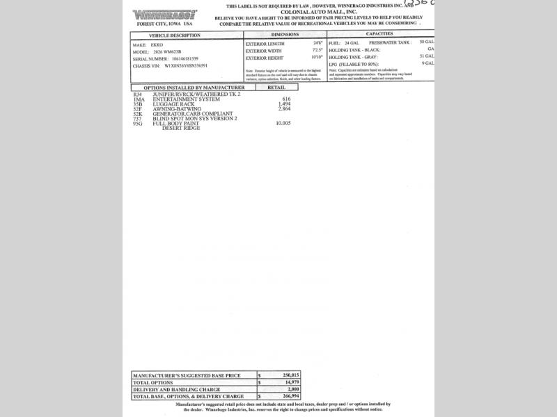 | Awning Info | 13' Power w/ LED Light and Bluetooth |